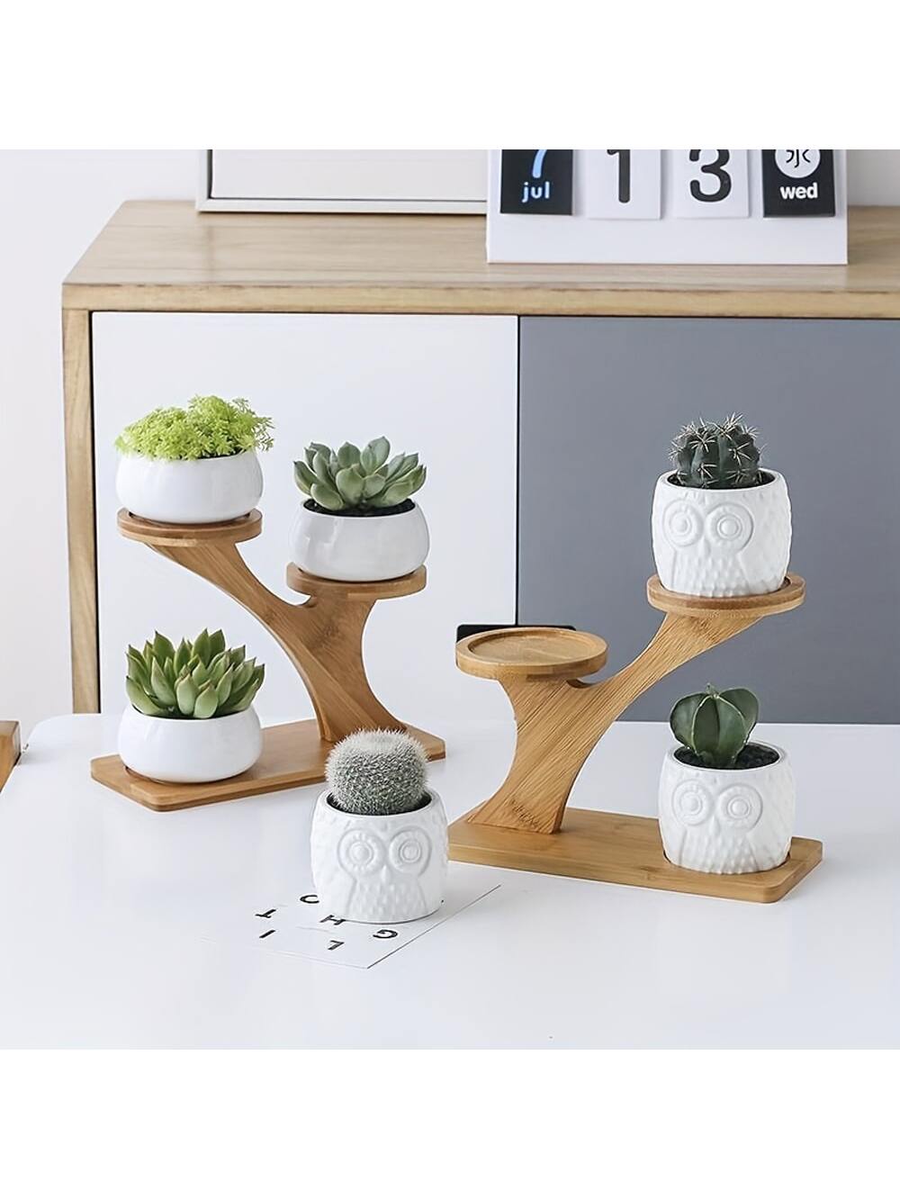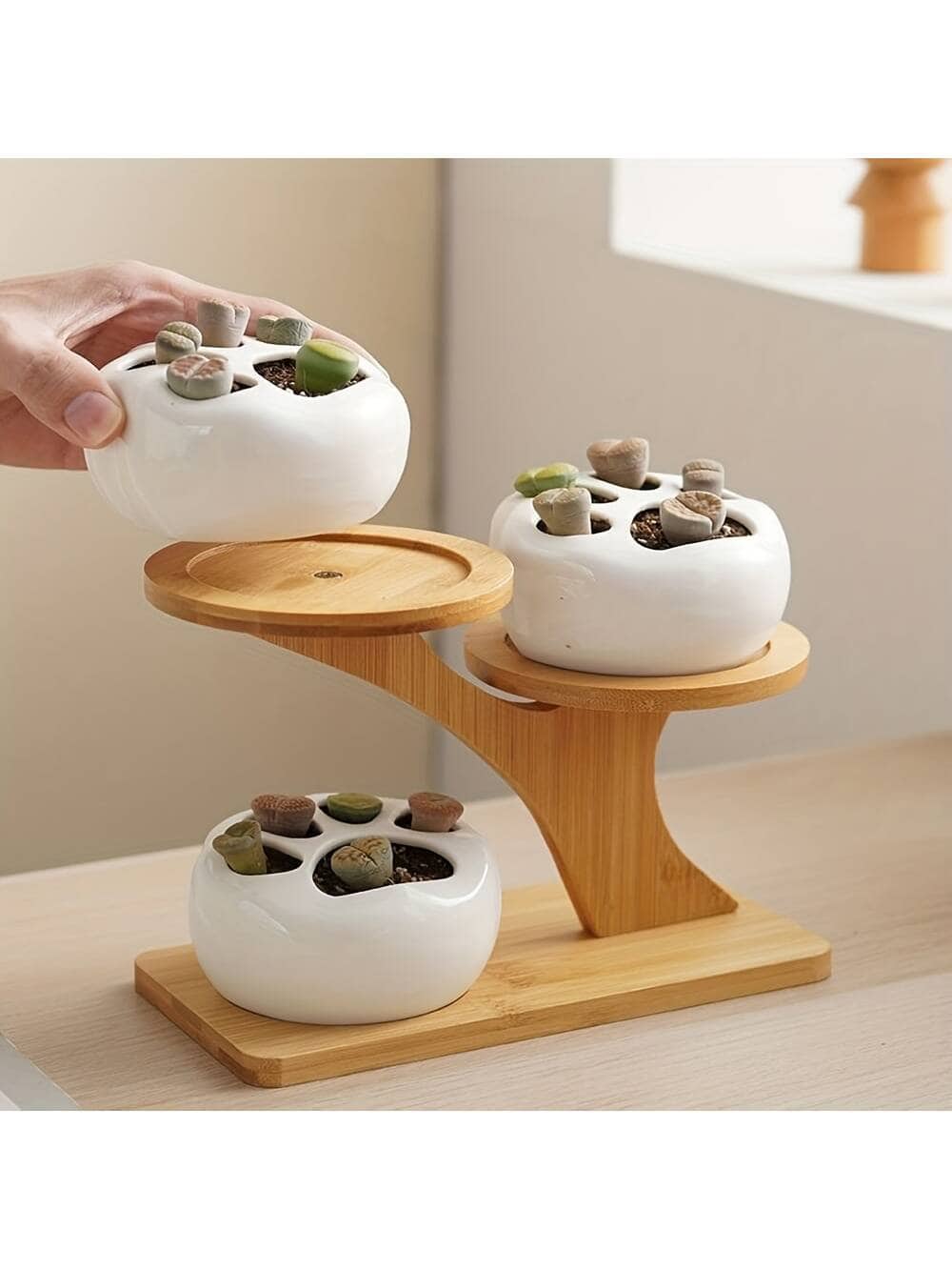 Este soporte escalonado de madera es la solución perfecta para exhibir tus plantas pequeñas y suculentas con estilo. Diseñado para colocarse en mesas, alféizares de ventanas o cualquier rincón, este estante permite organizar tus plantas en varios niveles, creando una presentación visualmente atractiva y ahorrando espacio al mismo tiempo. Su tamaño compacto lo convierte en una opción ideal para interiores, adaptándose a espacios pequeños como escritorios, oficinas y salas de estar.