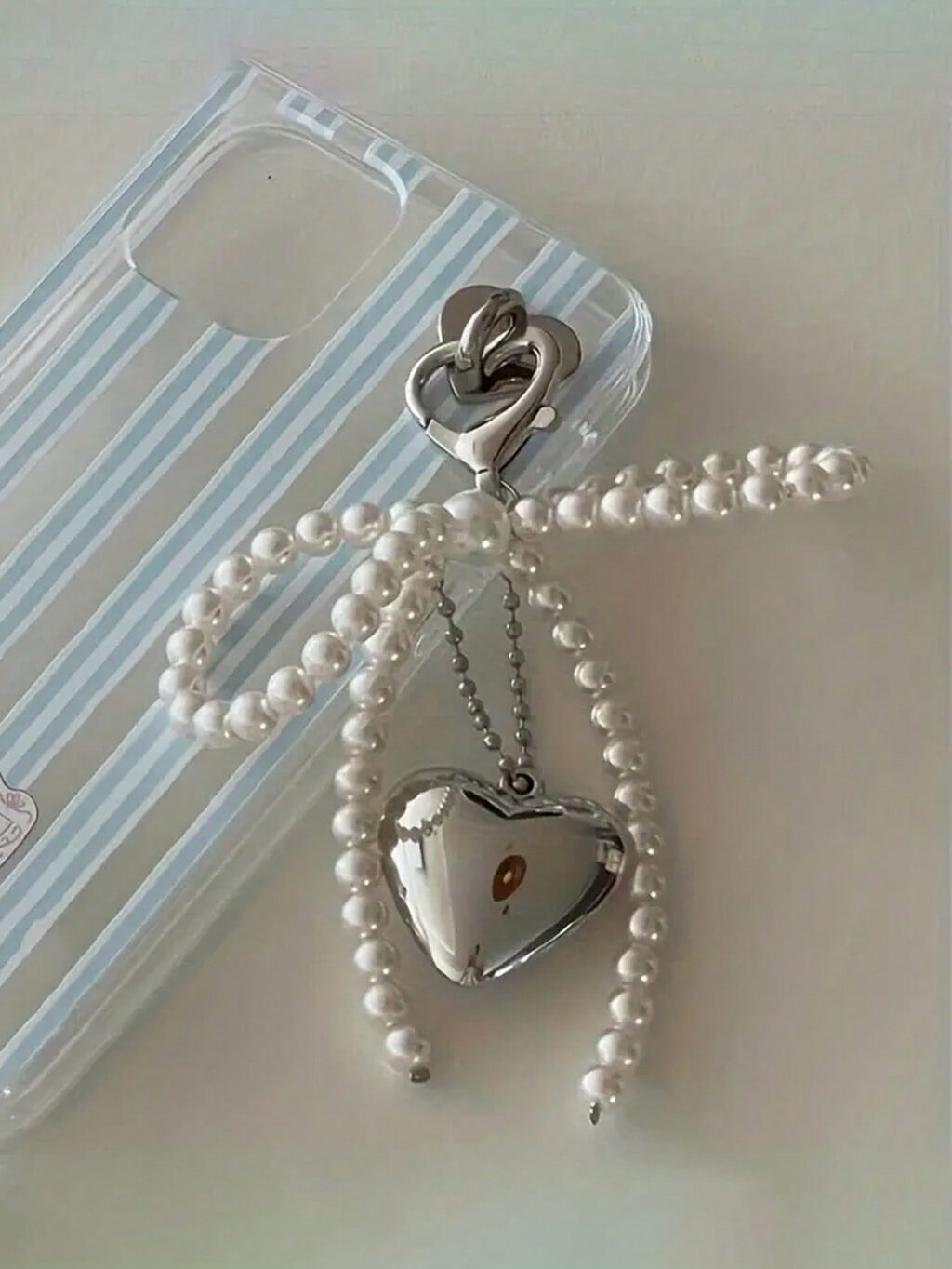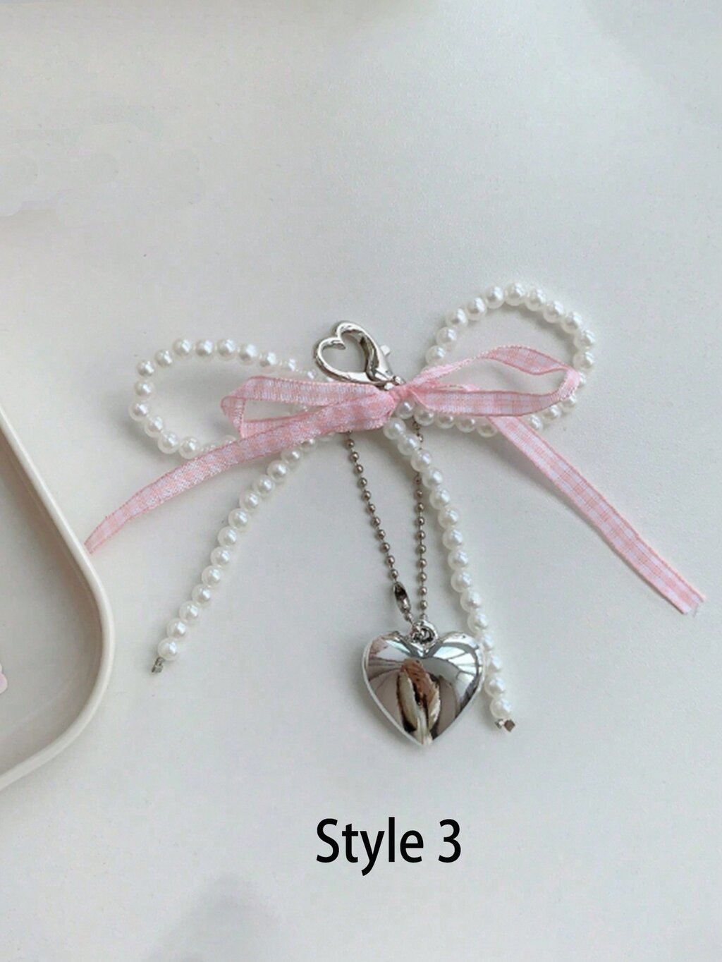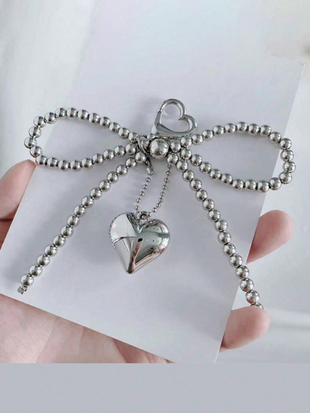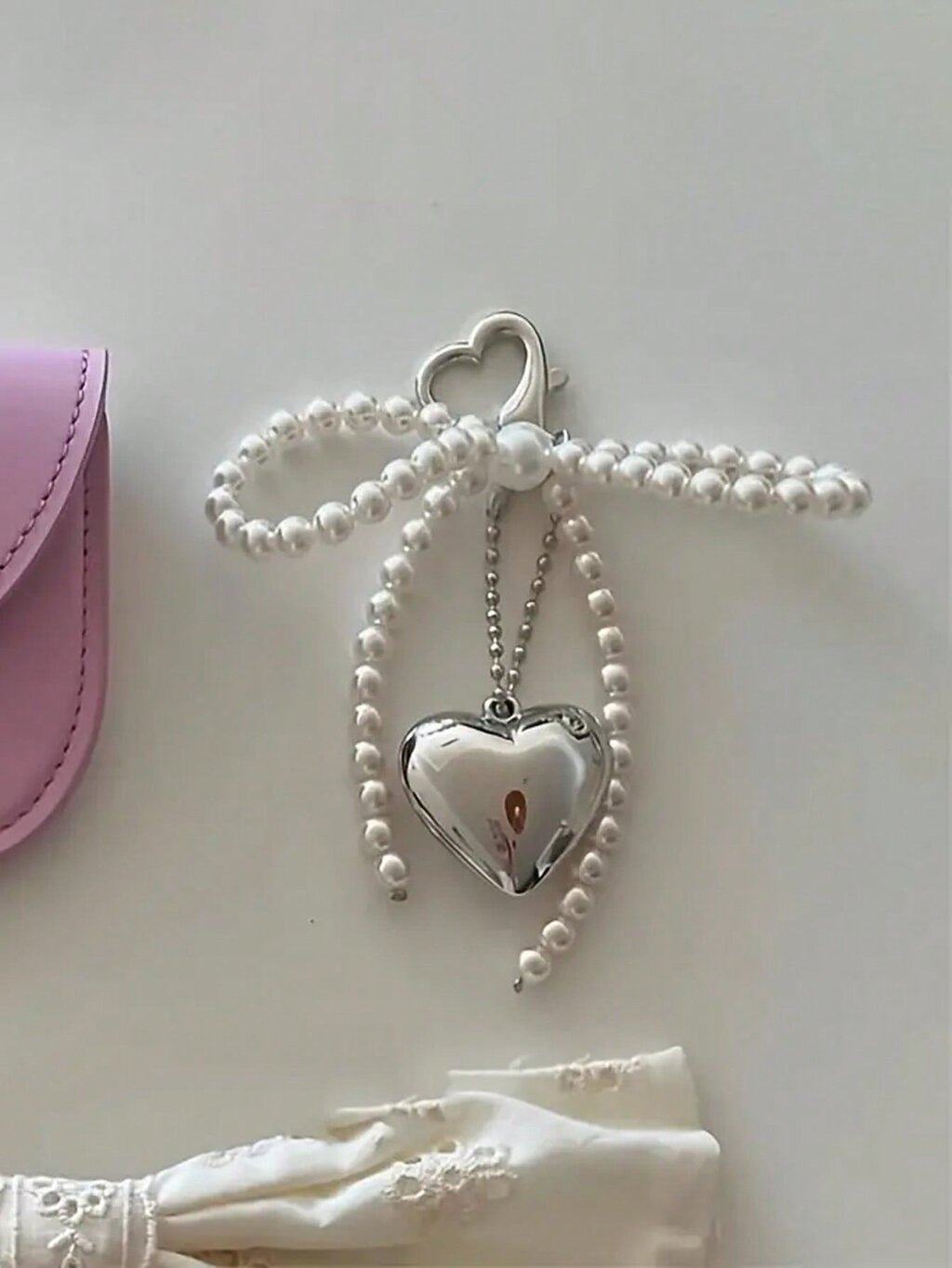Diseño encantador y elegante: El Llavero Fancy cuenta con un delicado lazo de perlas y un colgante metálico en forma de corazón, lo que le confiere un aire sofisticado y romántico. Este llavero es una pieza única que captura la esencia de la moda con su combinación de perlas y metal.