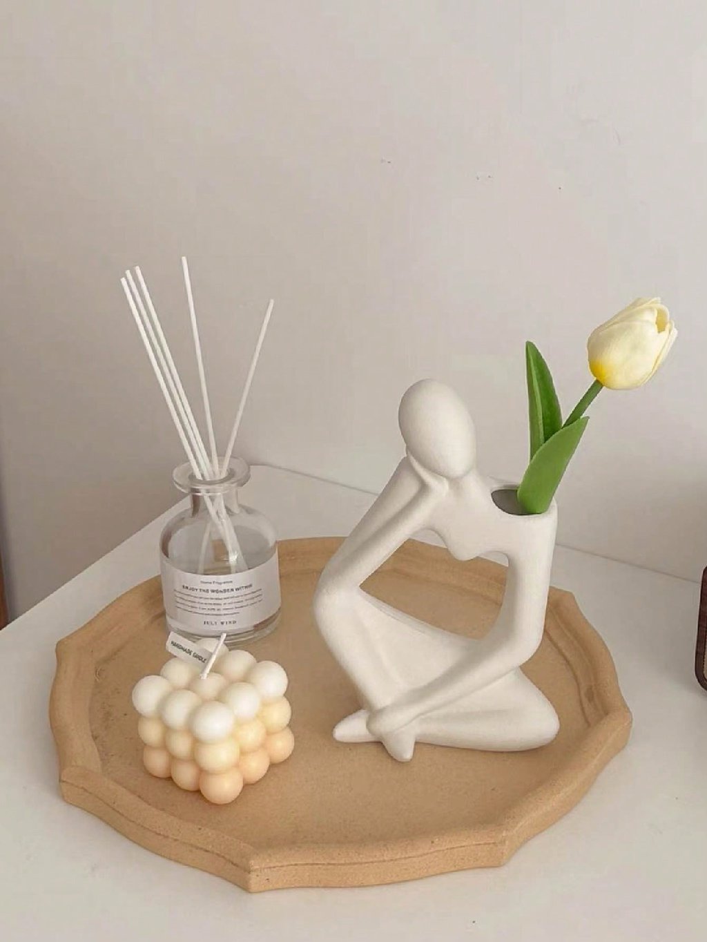Estatua de Oso Abstracto de Cerámica con Bandeja