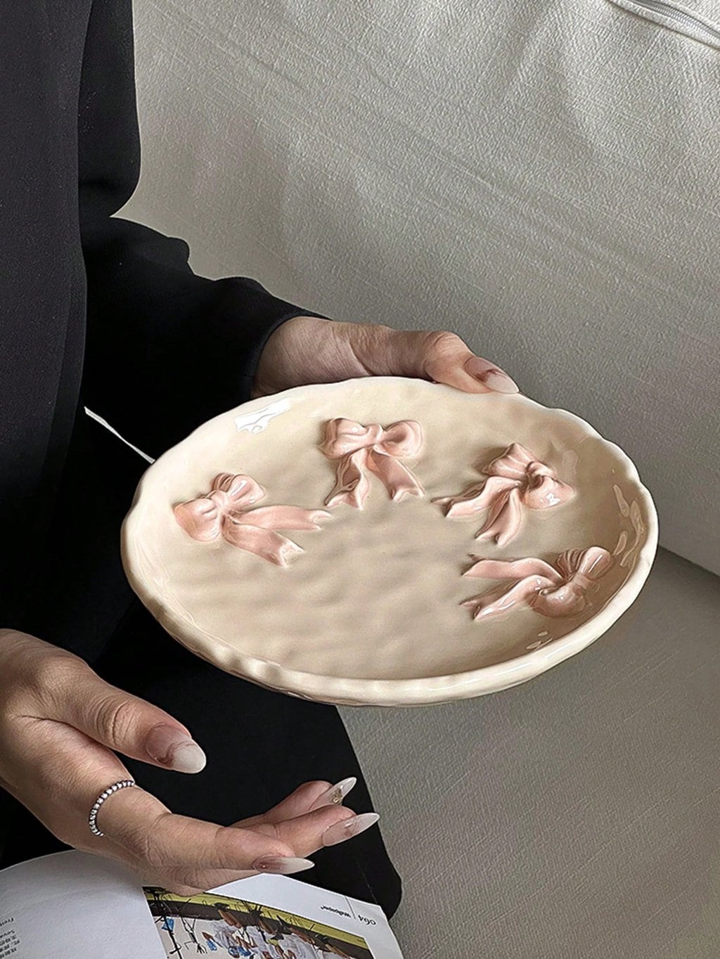 Diseño único: El diseño en relieve y el lazo decorativo hacen de este plato una pieza única que se destaca en cualquier ocasión.