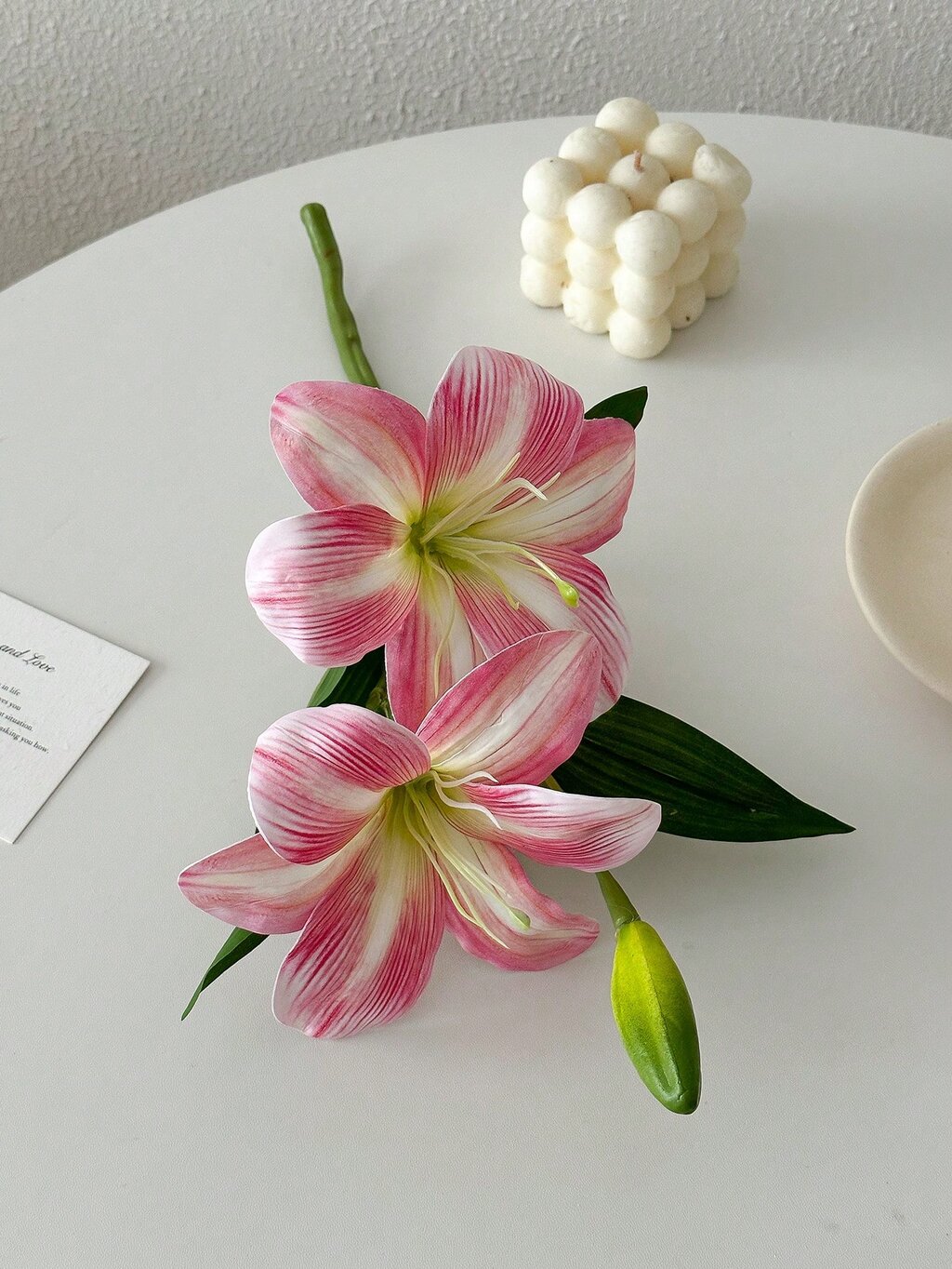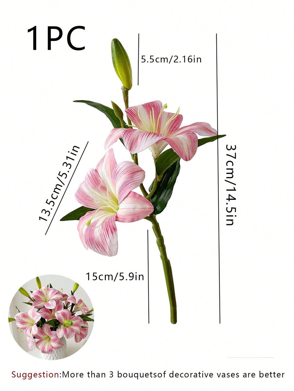 Diseño: Flores de lirio artificiales, con detalles que simulan las características naturales de la flor.
