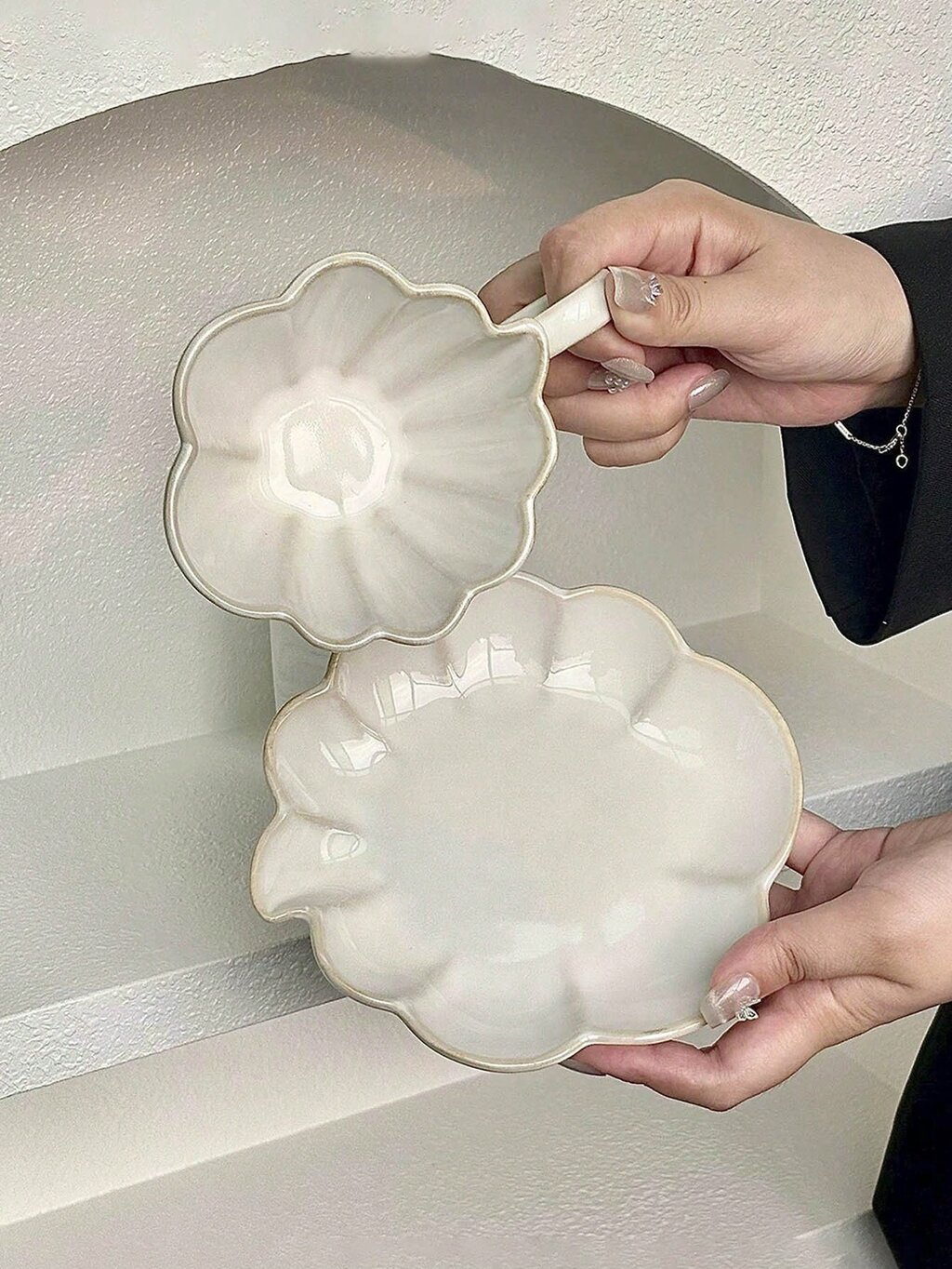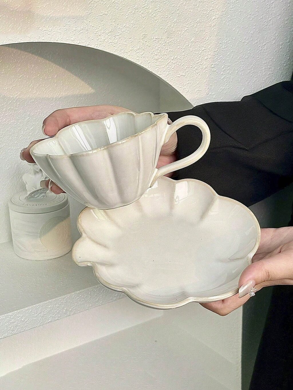 Diseño: Taza con acabado asimétrico, inspirado en las nubes, para una estética suave y fluida.