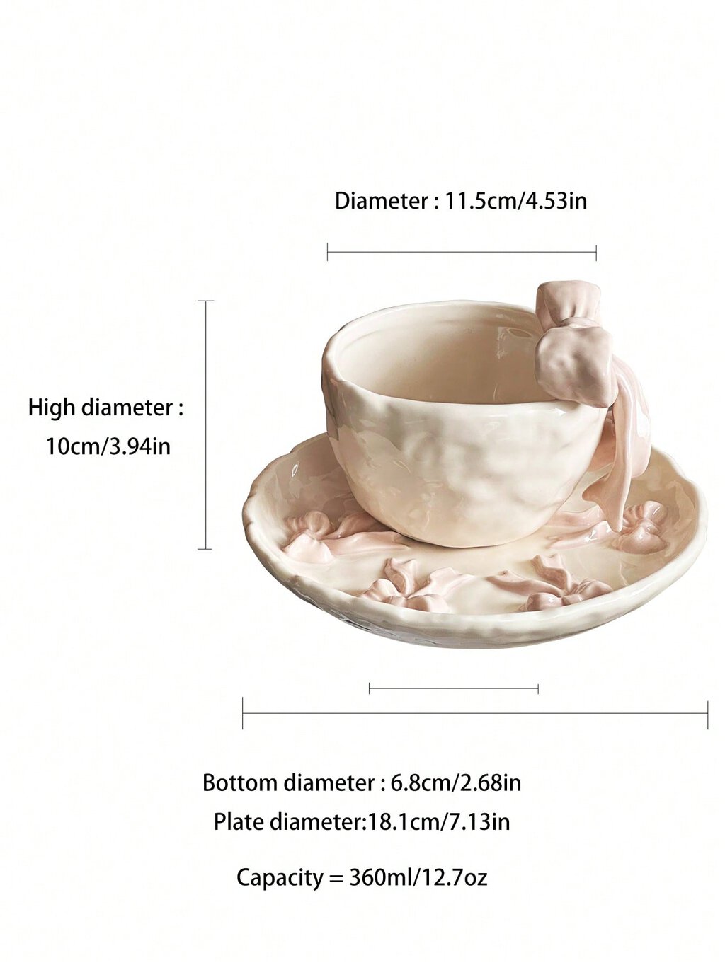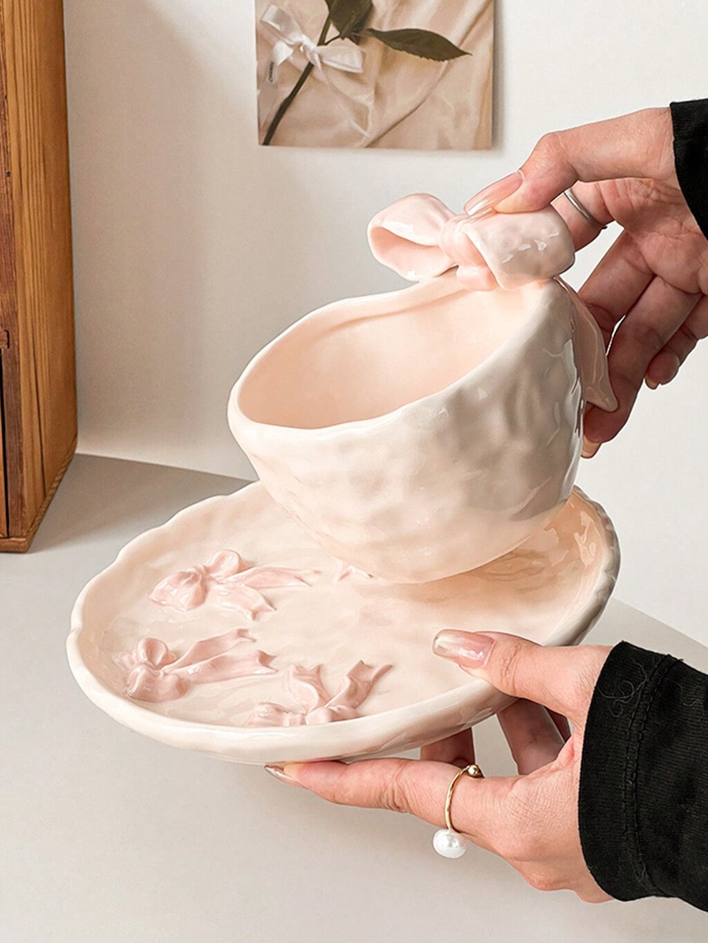 Juego de Taza y Platillo de Cerámica con Rayas Nórdicas
