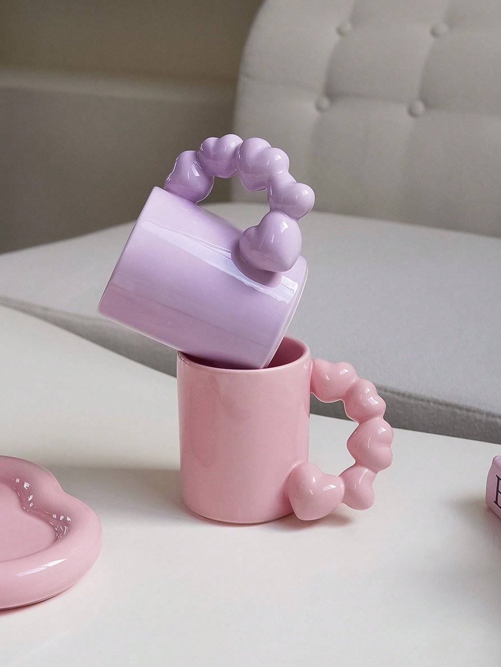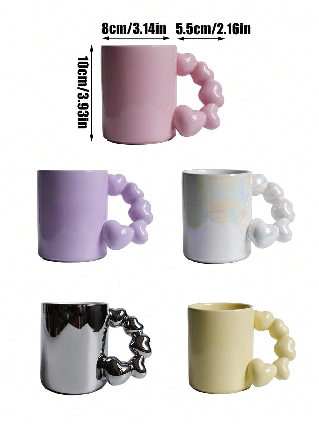 Diseño: Taza con mango en forma de corazón y colores vibrantes, ideal para café, té y otras bebidas.
