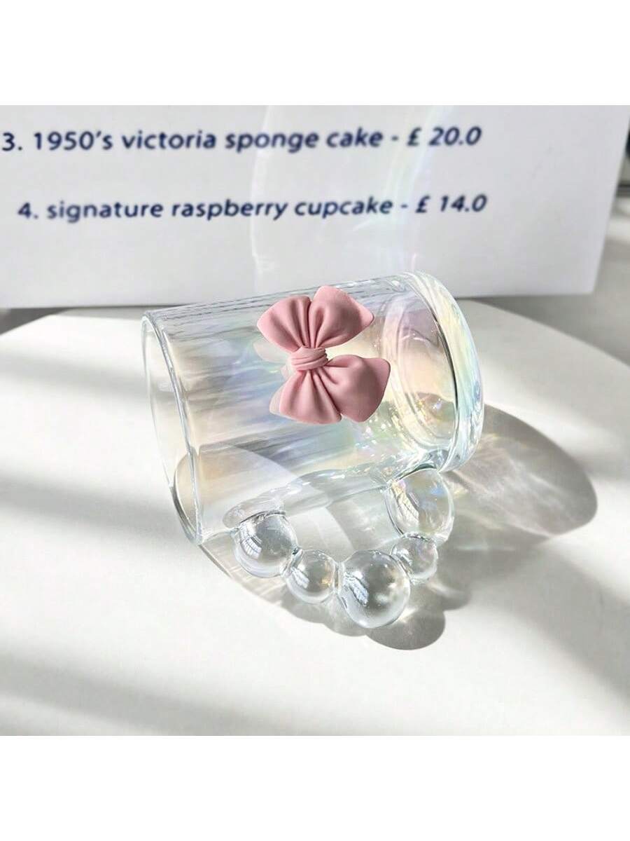 Vaso de vidrio rosa con lazo