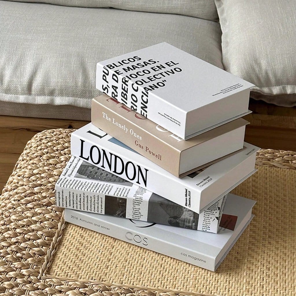 - Diseño Elegante y Moderno: Con un estilo simple y moderno, estos libros falsos complementan cualquier esquema de decoración interior, aportando un toque de sofisticación y minimalismo.