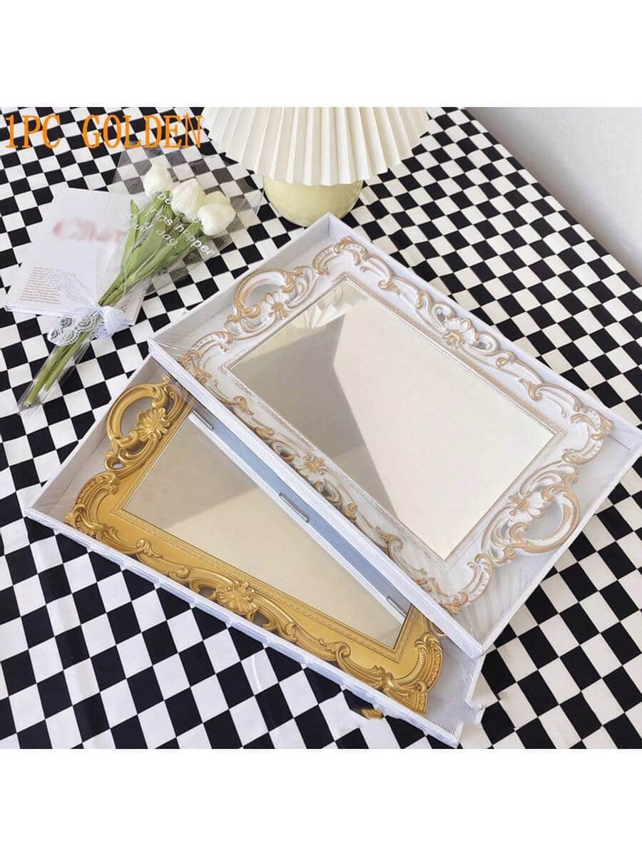 La bandeja de almacenamiento decorativa es una pieza sofisticada y versátil, ideal para organizar y exhibir tus joyas, aromaterapia, postres, frutas y otros objetos pequeños. Con un diseño lujoso en color dorado y una superficie de espejo de vidrio vintage, esta bandeja no solo es funcional sino también un hermoso complemento decorativo para cualquier espacio. Perfecta como regalo para el Día de San Valentín o cualquier ocasión especial, añade un toque de glamour y elegancia a tu hogar.