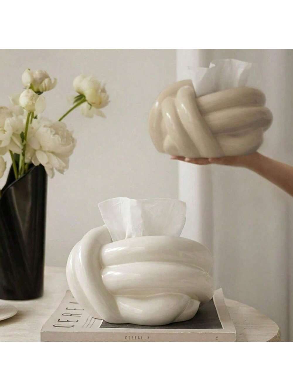 Caja de Pañuelos de Cerámica de Diseño Contemporáneo