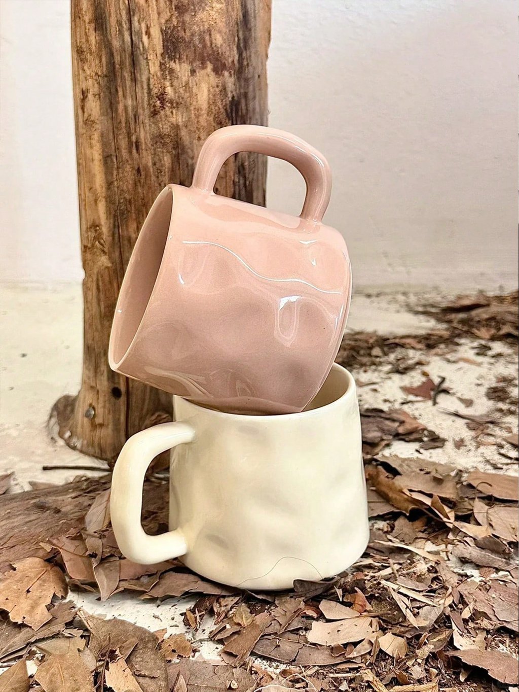 Diseño: Taza con forma asimétrica, acabado texturizado y estilo nórdico.