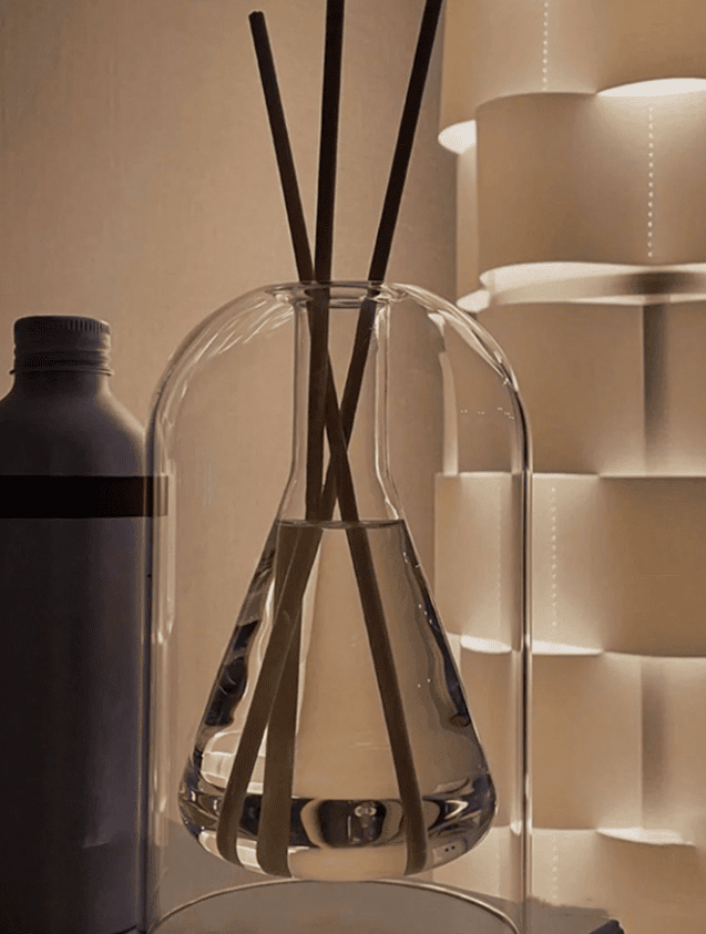Vaso de vidrio transparente con rayas verticales
