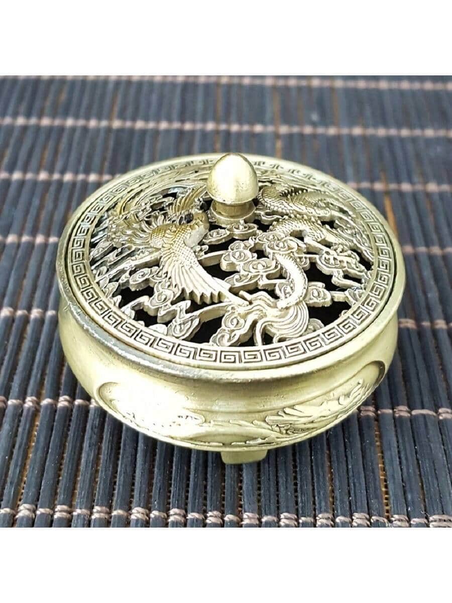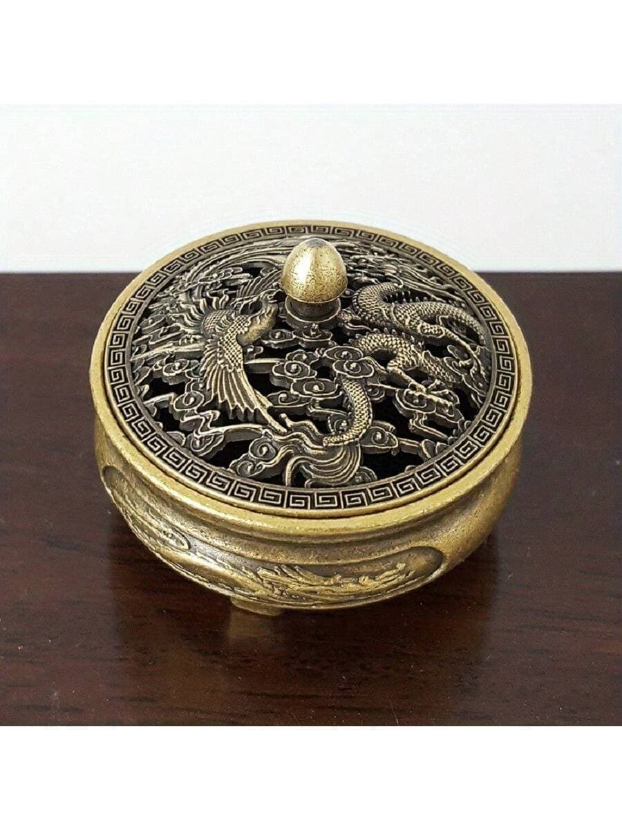 Quemador de Incienso Zen con Diseño de Dragón y Fénix – Elegante Difusor de Aromas Metálico para la Decoración del Hogar