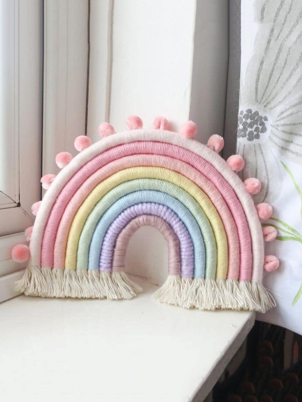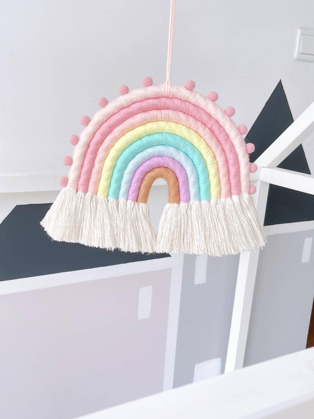 La decoración colgante de pompones arcoíris es una adición encantadora y alegre para cualquier hogar, perfecta para quienes buscan un toque divertido y colorido en su decoración diaria.
