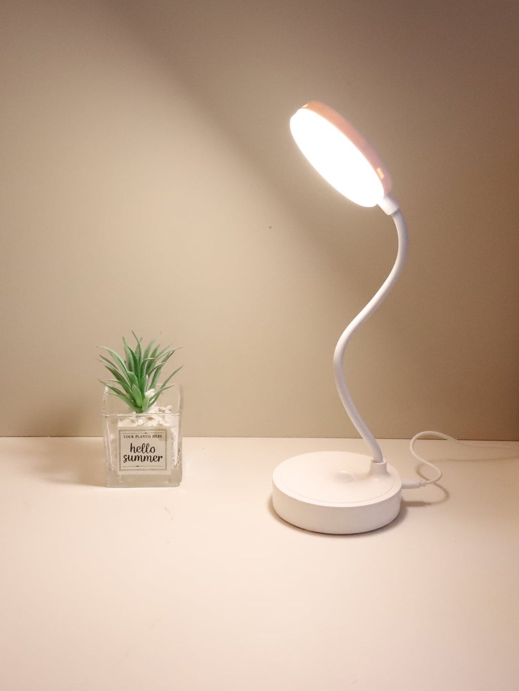 Ilumina tu espacio con estilo y funcionalidad con esta lámpara de mesa USB con diseño redondeado. Con tres modos de iluminación ajustables, esta lámpara es perfecta para satisfacer diferentes necesidades, desde estudio hasta relajación. Su diseño moderno y compacto la convierte en un complemento ideal para escritorios, dormitorios o cualquier rincón del hogar. Alimentada por USB, es una solución práctica y eficiente para iluminar tus actividades diarias.