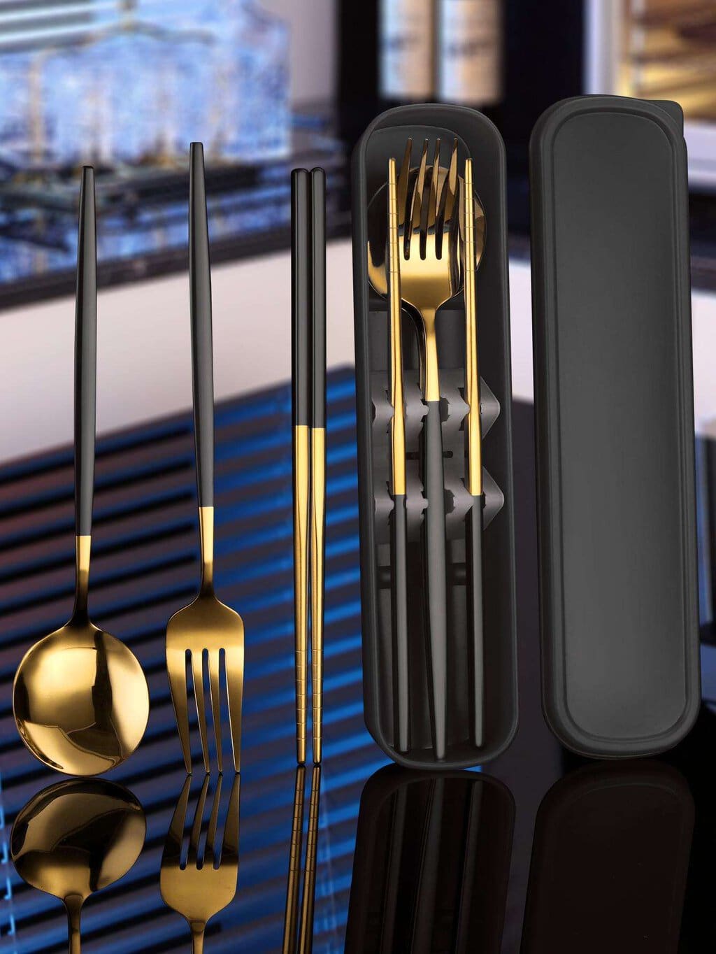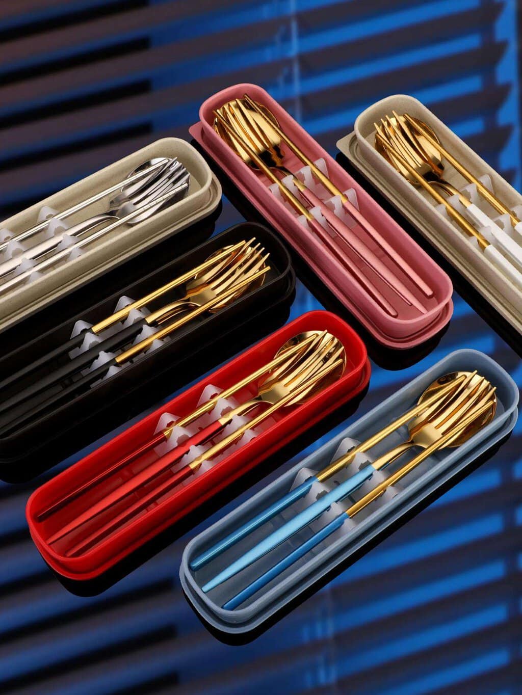 Juego de Cubiertos Portátiles de Acero Inoxidable de 4 Piezas
