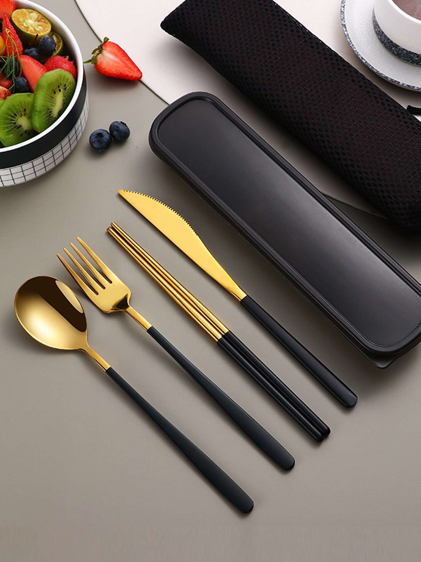 Tarro de especias transparente con 4 compartimentos y cucharas